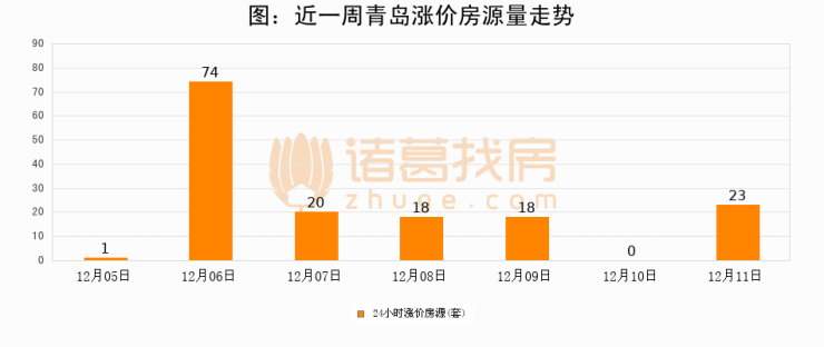 根据诸葛找房数据显示,青岛24小时涨价房源量为23套,较12月10日增加23套,环比上涨0%。与此同时,涨价房源占比小幅扩大,业主信心有所提升。