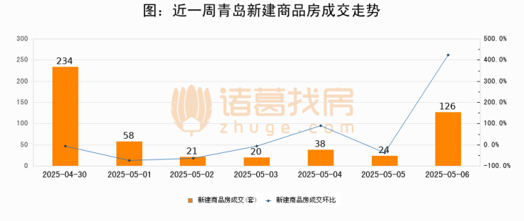 【青岛成交日报】05月06日新房成交126套、二手房300套;涨价房源1套