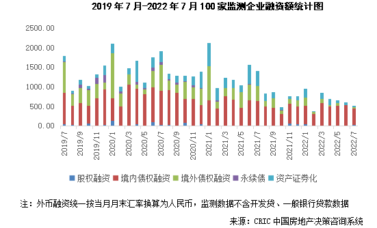 据克而瑞统计,7月100家典型房企的融资总量为522.88亿元,环比减少13.7%,同比减少62.9%。房企融资量已连续4月环比减少,可见房企融资难的问题仍然较为突出。从融资结构来看,境内债权融资429亿元,环比减少18.5%,同比减少33.6%;境外债权融资29亿元,环比增加203.6%,同比减少92.4%;本月资产证券化融资40亿元,环比减少42.8%,同比减少89.4%。