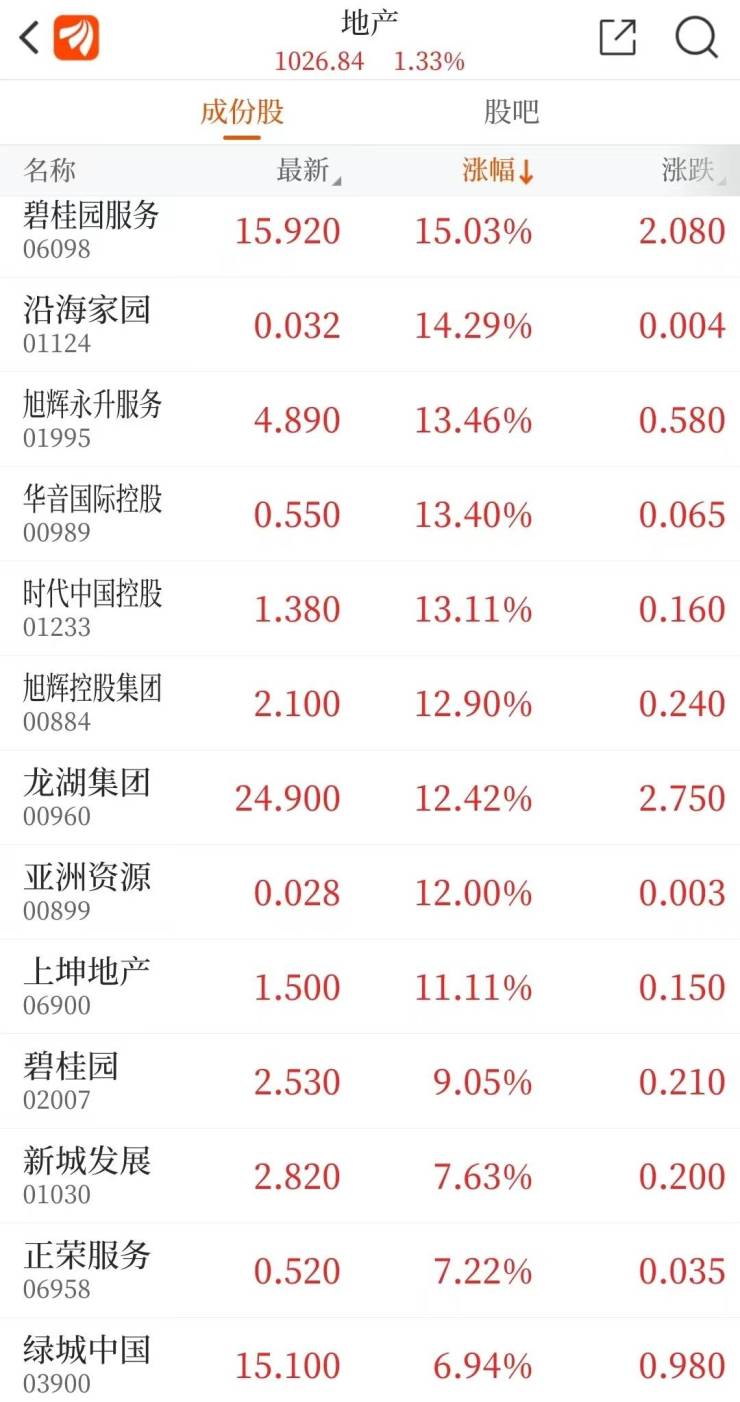地产股和物业股迎大涨