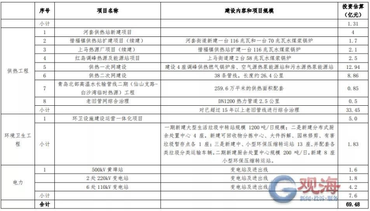 供热设施和管网方面,规划重点建设项目共3大类,总投资33.45亿元。集中供热锅炉房项目3项,投资7.8 亿元;调峰锅炉房及能源站项目1项,投资2.5亿元;管网工程项目投资23.15亿元。