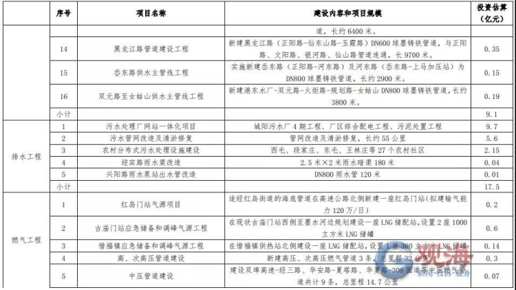 燃气设施和管网方面,规划重点建设项目3大类,总投资1.31亿元。其中气源项目1项,投资0.2亿元;应急储备和调峰气源项目2项,总投资0.74亿元;管网工程项目投资0.37亿元。