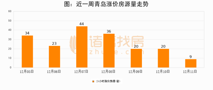 根据诸葛找房数据显示,青岛24小时涨价房源量为9套,较12月10日减少11套,环比下降55%。与此同时,涨价房源占比小幅回落,对于购房者来说是一个入市窗口期,购房者可抓住时机入市。