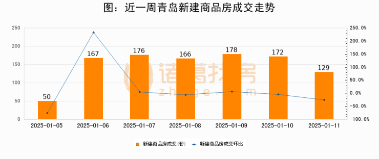 【青岛成交日报】01月11日新房成交129套、二手房70套;涨价房源37套