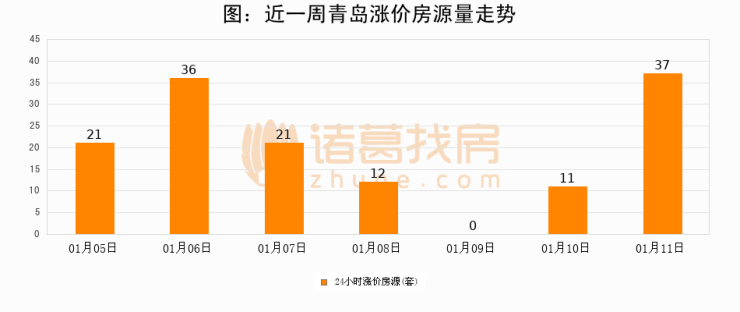 根据诸葛找房数据显示,青岛24小时涨价房源量为37套,较01月10日增加26套,环比上涨236.4%。与此同时,涨价房源占比小幅扩大,业主信心有所提升。