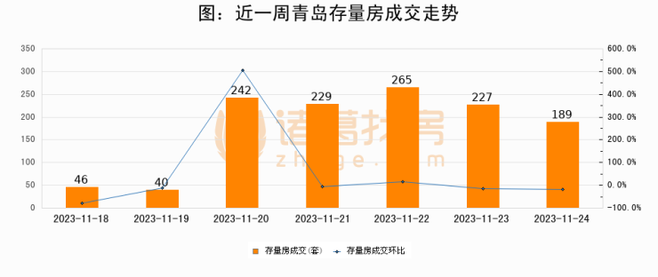 【青岛成交日报】11月24日新房成交352套、二手房189套;涨价房源65套