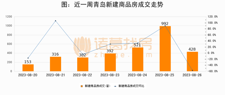 【青岛成交日报】08月26日新房成交428套、二手房37套;涨价房源22套