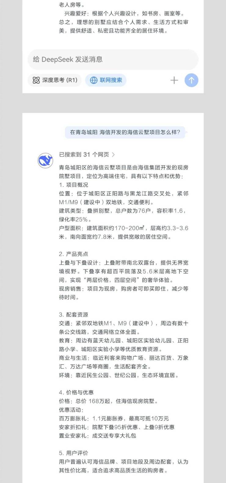 DeepSeek眼中的海信云墅什么样?