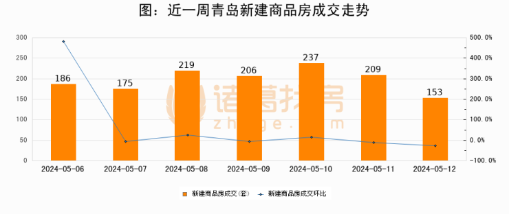 【青岛成交日报】05月12日新房成交153套、二手房73套;涨价房源38套