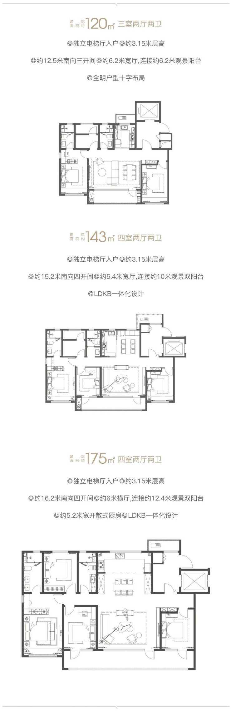 首推建面约120-175㎡滨河臻装洋房,约3.15米层高,独立电梯厅入户,约12-16米南向大面宽,约6米宽厅,约6-12.4米度假式阳台,LDKB餐客厅、阳台、厨房一体化设计,从功能、场景、尺度、细节等方面贴心考量,让一直寻求的生活理想变为现实。