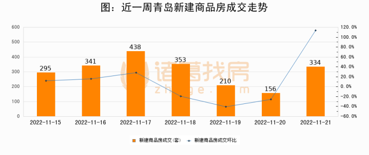 【青岛成交日报】11月21日新房成交334套、二手房248套;涨价房源124套