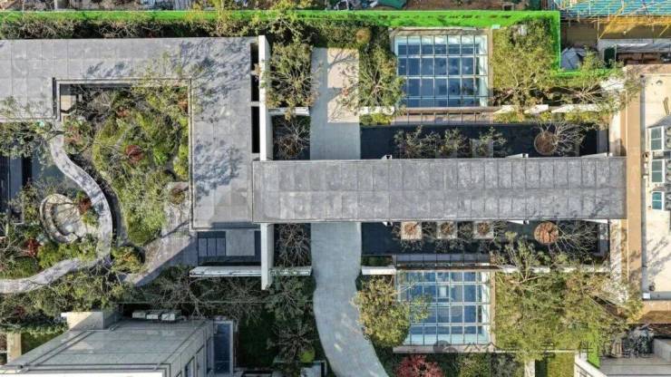 云岫门庭两侧30年树龄乌桕列阵和入口迎客松,寓意“长久、吉祥”,重塑归家第一重礼序;约3.8米高鸣樾廊桥,是崂山前海独树一帜廊桥景观;约5米林岚水瀑,取自郭熙《林泉高致》的高山流水,气势恢宏,气贯长虹。