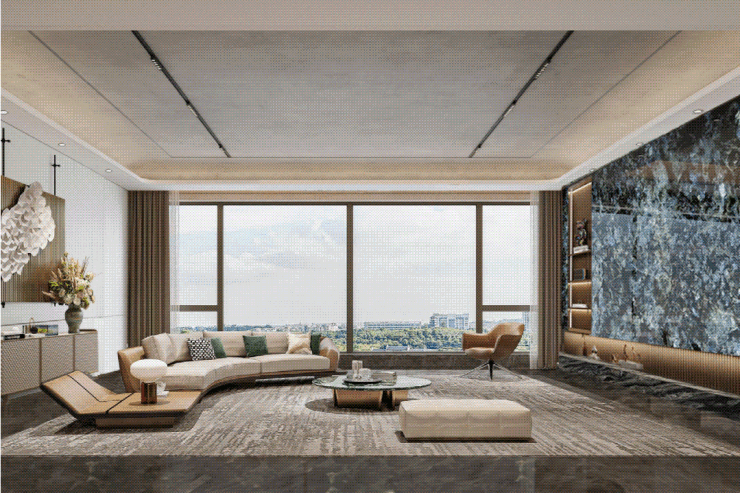 好的建筑应该是环境的一部分。在立面设计中,君一·伴山鸣樾挑战了传统的建筑语境,创新设计「现代东方美学立面」,放大宽幕观景视觉效果。