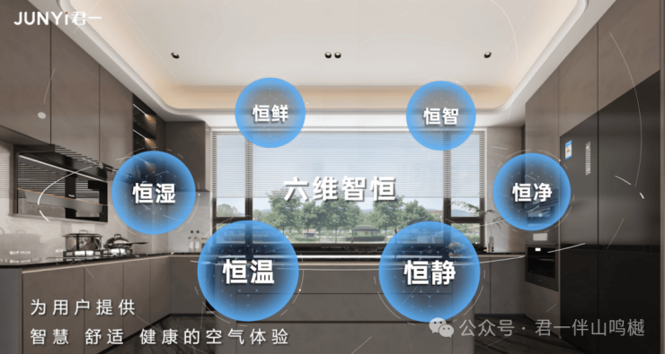从踏入家门第一刻开始,便能感知到智能系统在各个空间里营造的不同人性化生活场景……全屋智能场景、全屋家电聚合、智能空气调节、全屋WIFI、手机APP智控、全屋语音交互等;以及在居者普遍关心的空气健康方面,为业主提供全维、全季、可智能调节的“恒温、恒湿、恒鲜、恒静、恒净、恒智——六维智恒”智能空气解决方案,堪称一部行走的智能家居教科书。