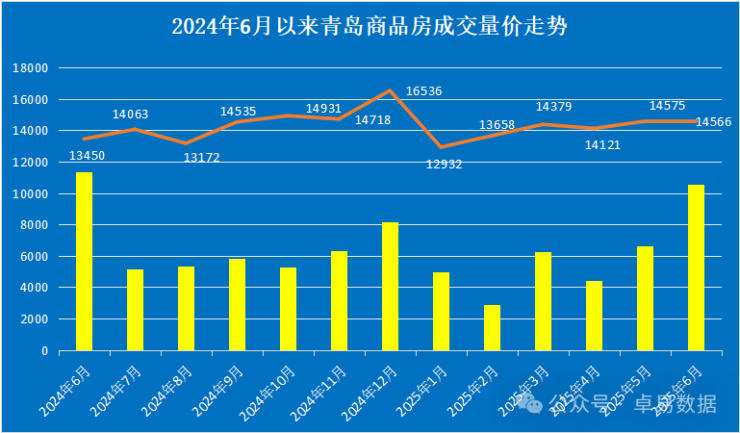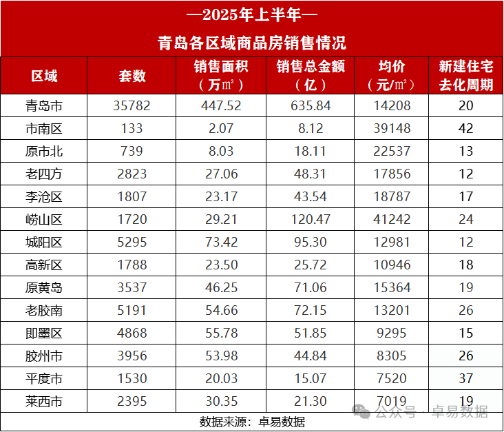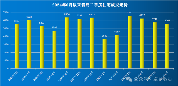 据卓易数据统计:截止到6月末,2025年上半年青岛新建商品房成交35782套(住宅27290套,352.03万㎡),成交447.52万㎡,成交总额635.84亿;同比去年分别上涨2.58%、4.25%和5.58%;二手房成交套33855套。商品房层面,新房与二手房成交量基本持平,但住宅维度,二手住宅成交套数远超新房。新房、二手房2025年上半年合计成交约6.96万套。
