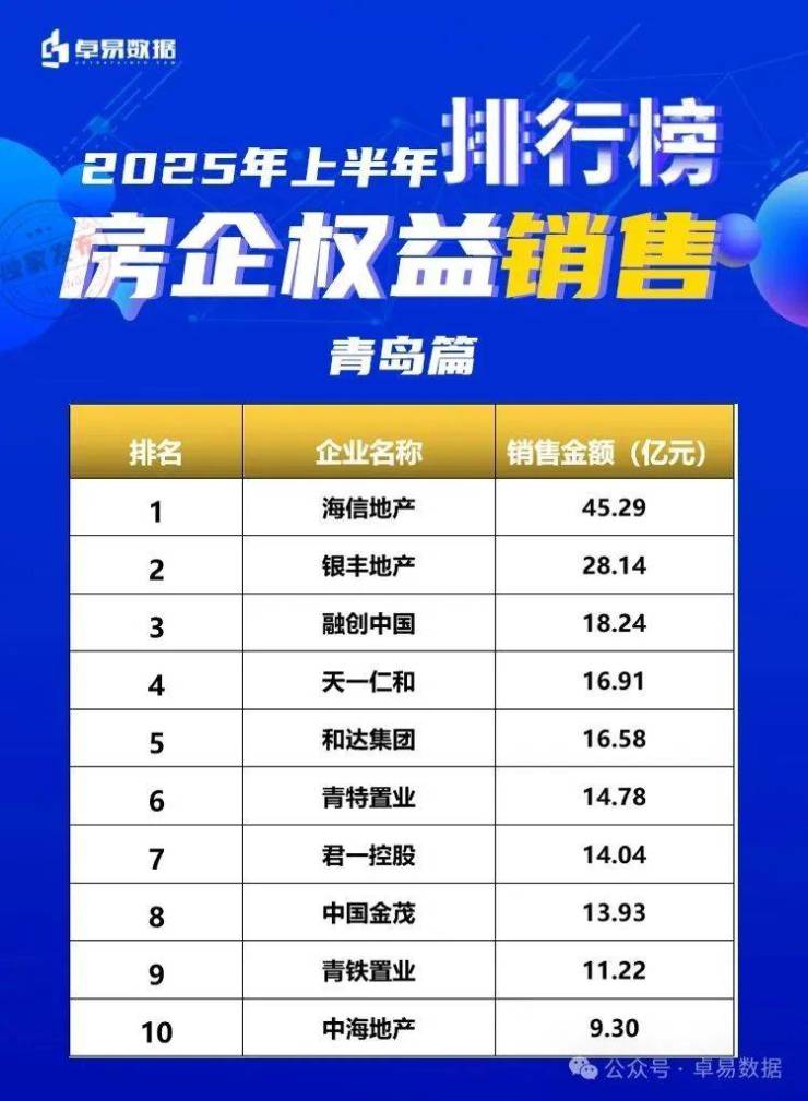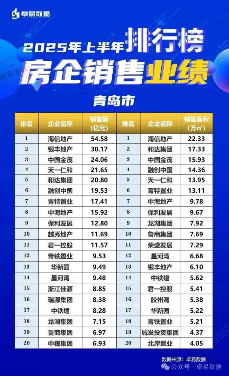 2025年青岛上半年楼市解析,房企销售榜TOP20出炉