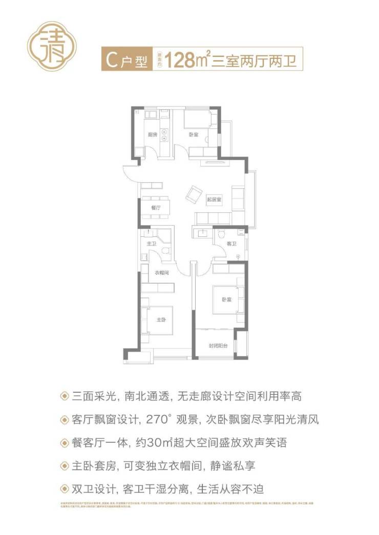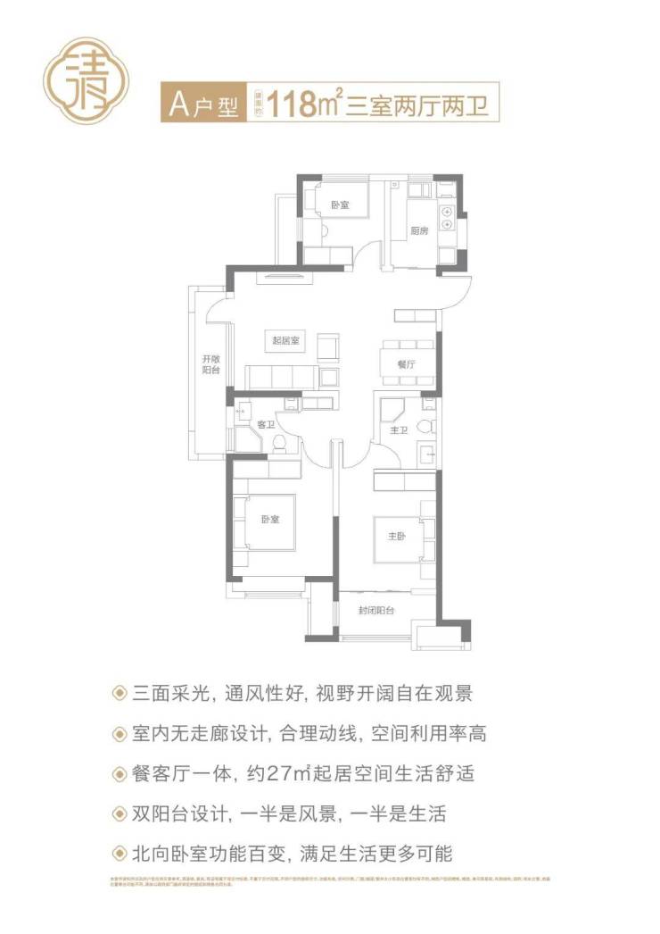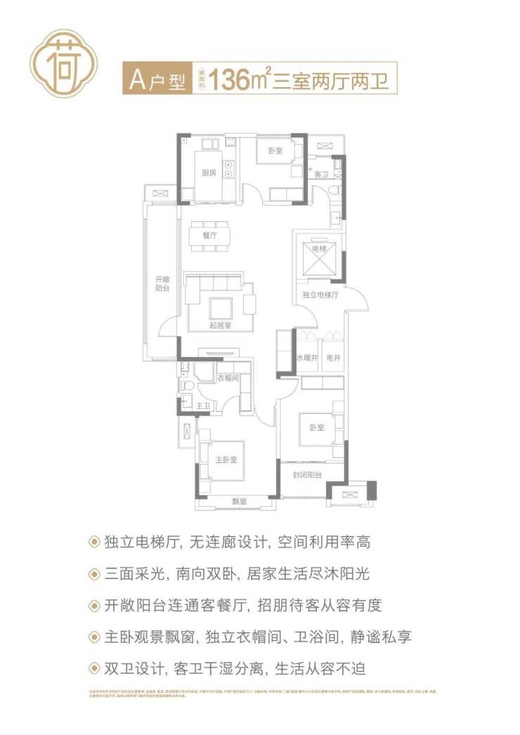 而清荷茗郡产品则涵盖高层、小高、电梯洋房、商业配套等。户型设计方面,建面约116平—136平,全部是套三双卫设计,南北通透、尺度阔绰。