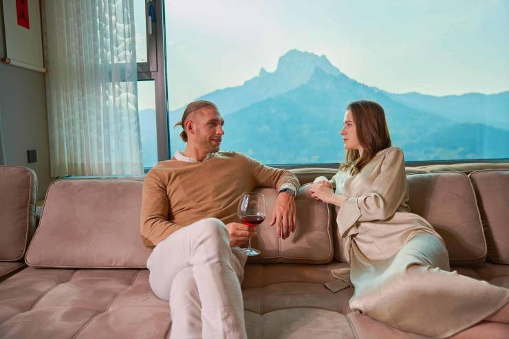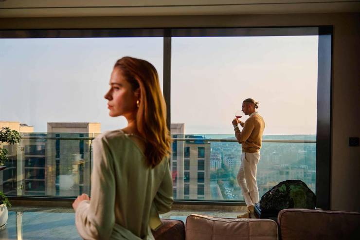 真正的顶级思维,始于对稀缺资源的绝对占有。银丰玖玺城,择址崂山石老人板块,这一坐标本身即是青岛价值的鼎峰。项目所拥有的,是“家中即看山瞰海”的极致景观资源,让壮丽自然成为日常生活的背景墙。大片中,人物在空间里或静立观海,或抬头观山,这种与自然无界对话的生活方式,提供了塔尖人群最看重的情绪价值与不可再生的稀缺性。