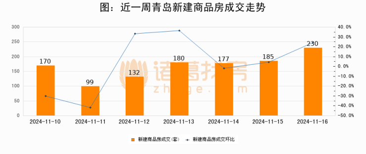【青岛成交日报】11月16日新房成交230套、二手房50套;涨价房源69套