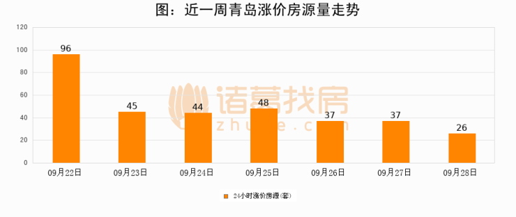 根据诸葛找房数据显示,青岛24小时涨价房源量为26套,较09月27日减少11套,环比下降29.7%。与此同时,涨价房源占比小幅回落,对于购房者来说是一个入市窗口期,购房者可抓住时机入市。