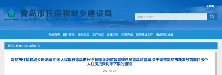 青岛阶段性取消首套房商贷利率下限 4月1日起执行