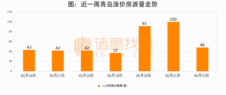 根据诸葛找房数据显示,青岛24小时涨价房源量为48套,较05月21日减少52套,环比下降52%。与此同时,涨价房源占比小幅回落,对于购房者来说是一个入市窗口期,购房者可抓住时机入市。