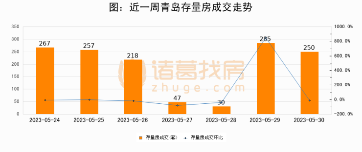 【青岛成交日报】05月30日新房成交873套、二手房250套;涨价房源83套