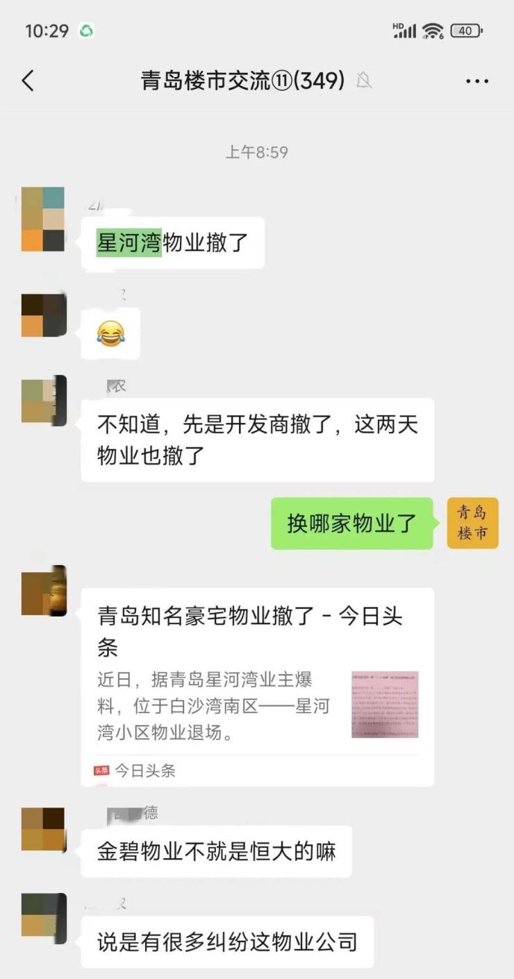 今日,据青岛楼市大事件公众号微信粉丝群内的粉丝爆料,位于白沙湾片区的青岛高端住宅小区星河湾小区的星河湾物业退场撤离了。