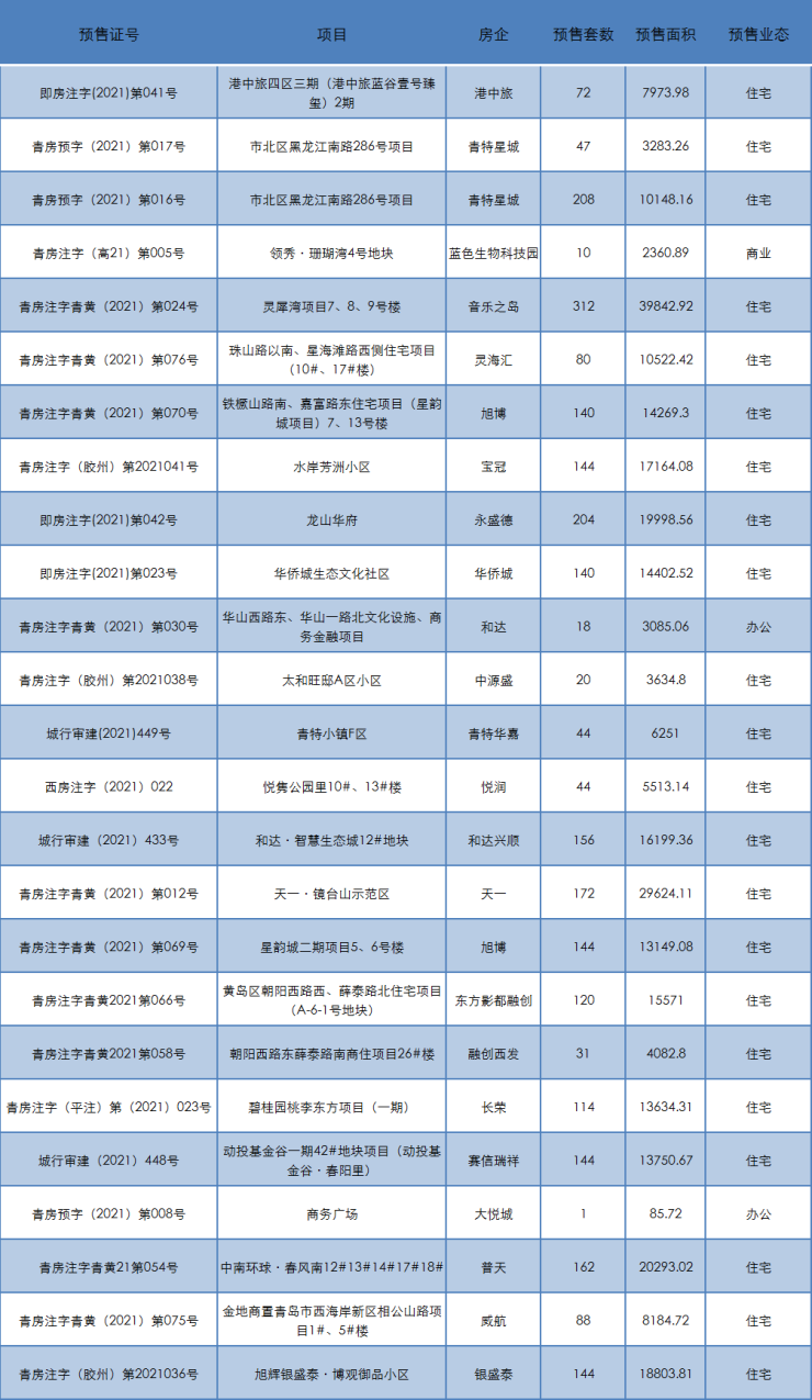 (4)编号QDCYP- 2021-6-4号地块位于城阳区城阳街道驯虎山路东、凤山南路南,土地总面积22786㎡,规划建筑面积41014.8㎡,为住宅、商业、商务混合用地,成交总价16709.4295万元,竞得人为青岛和达致信置业有限公司。