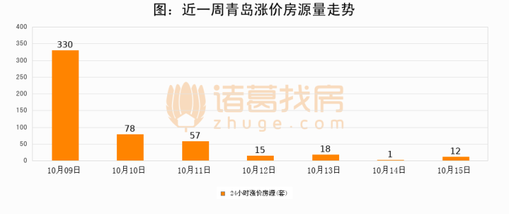 根据诸葛找房数据显示,青岛24小时涨价房源量为12套,较10月14日增加11套,环比上涨1100%。与此同时,涨价房源占比小幅扩大,业主信心有所提升。