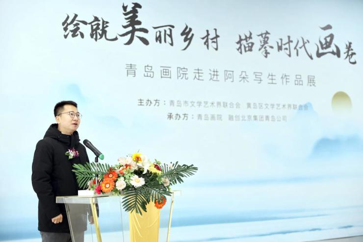融创北京集团营销中心副总经理阚伟男在发言中向青岛市文联和西海岸文联的领导表示感谢,向张风塘院长带队的青岛画院艺术家们表达敬意。他说,阿朵小镇是一个文旅小镇,更是一个集多种文化设计元素于一体的作品。这里的月空婚礼堂、钻石餐厅、多多飞毯等建筑荣获国内外多个设计大赛的奖项,感谢画院的艺术家们给阿朵小镇这些建筑作品和自然景观赋予更多的艺术内涵和文化情怀。阿朵小镇是一个正在生长中的小镇,不仅一步一景,而且一时一景,欢迎画院的艺术家们常到阿朵感受四时变幻的美景和茁壮勃发的生长力。