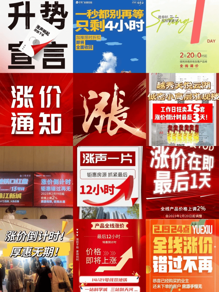 在肖文晓看来,在市场出现回暖之际,开发商通过宣传“回收折扣”“涨价在即”等方式推动意向客户转化,不再像去年四季度一样频繁“以价换量”。从营销意图来看,目前开发商的主要诉求还是走货去库存,宣扬涨价更多的是一种宣传手段。