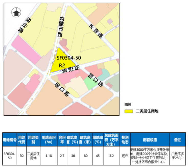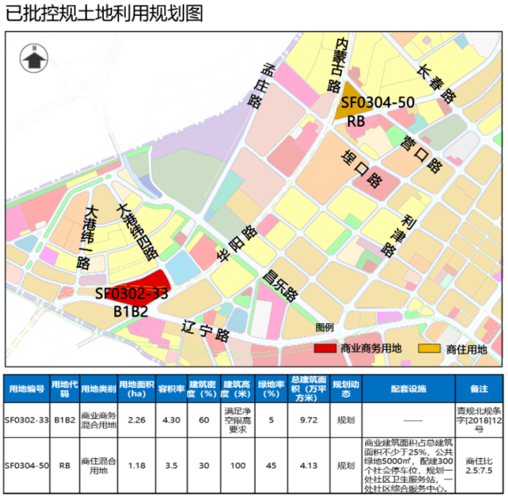 2宗地均由商业用地调整为住宅类用地:SF0302-33地块位于市北区华阳路、辽宁路交叉口西北侧;SF0304-50地块位于市北区内蒙古路、营口路、华阳路围合区域。