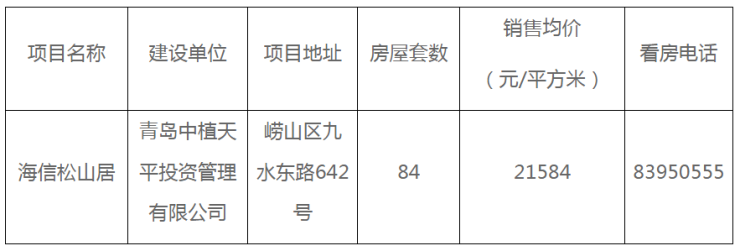 近日,崂山区海信松山居二期5#、6#楼产权型人才住房项目纳入市级统一配售,共计84套房源,均价21584元/㎡。项目位于九水东路642号,容积率仅有1.5,此次配售的2栋楼为7层洋房。