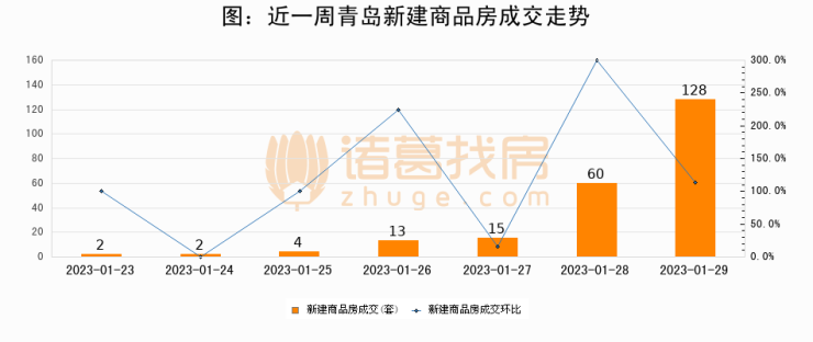 【青岛成交日报】01月29日新房成交128套、二手房125套;涨价房源303套