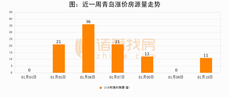 根据诸葛找房数据显示,青岛24小时涨价房源量为11套,较01月09日增加11套,环比上涨0%。与此同时,涨价房源占比小幅扩大,业主信心有所提升。