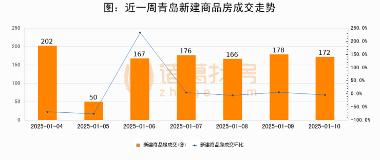 【青岛成交日报】01月10日新房成交172套、二手房199套;涨价房源11套