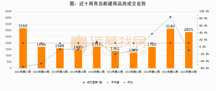 【青岛成交周报】第36周新房成交2855套,二手房978套,涨价房源449套