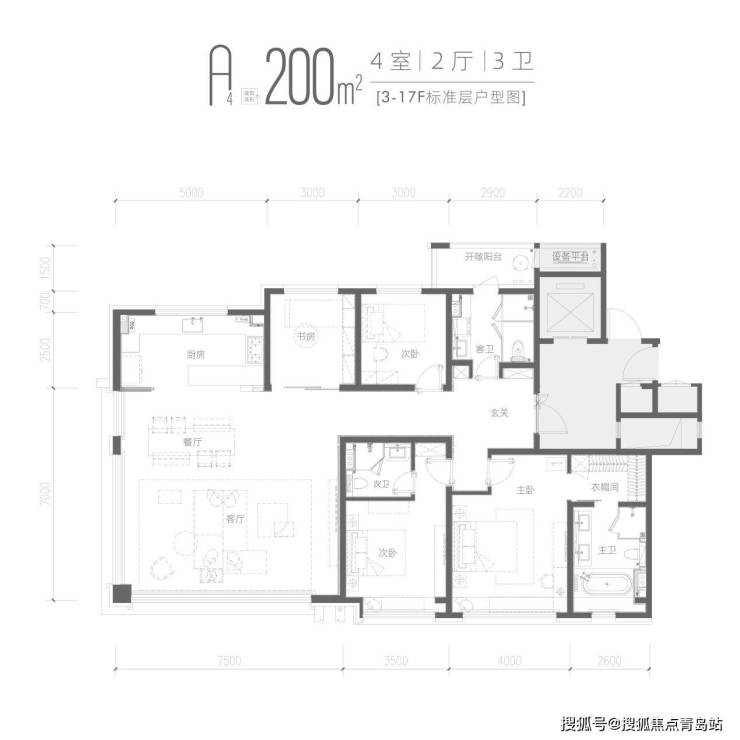 云上观海户型最小面积为143㎡,纯粹的大平层户型配置。项目建面约143-390㎡知富阶层奢适生活空间,所有户型皆拥有南向巨幕面宽、270°观景视野、3.15米起奢适层高,独创全转角厅、LDK一体化等设计亮点,致力于打造青岛海居生活新标杆。