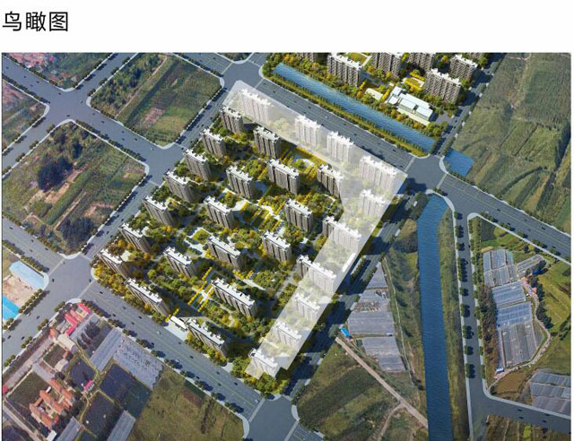 项目基地北侧为龙湖九里晴川一期住宅,东西侧分别为东马河和苑庄河,景观条件较佳,项目分东、西两地块,中间由现状道路双河路隔开。西地块再北侧、西侧布置高层,东侧布置叠拼产品,东地块在西侧布置高层,东侧布置叠拼产品,高低分区明确,小区主入口设置在现状双河路上。
