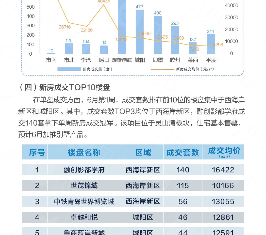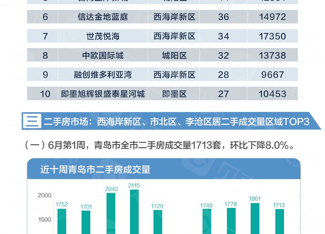 [楼市快讯] 6月排名前列周!青岛楼市总成交4572套