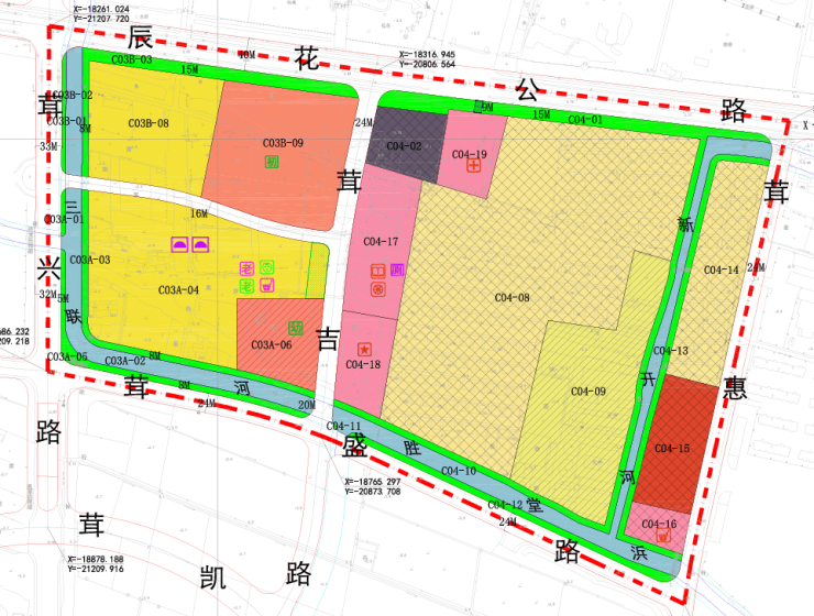 据上海市松江区规划和自然资源局2023年12月发布的《上海市松江区中山街道SJC1-0032单元控制性详细规划09、10街坊、SJC1-0006单元控制性详细规划C03、C04街坊局部调整》草案的补充公告,C03A-04地块增设1处公共空间1500平方米,公共服务配套增设1处日间照料中心200平方米、1处老年活动室200平方米、1处养育托管点360平方米、1处生活服务点100平方米。C03A-04地块以50米为基准高度,沿茸兴路、茸盛路局部设置60米。