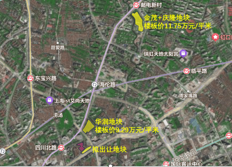 与拟出让地块临近的虹口区嘉兴社区C080301单元hk191A-03地块于2024年11月成交,竞得人为华润置地旗下的上海煦臻企业管理有限公司,成交总价为51.3608亿元,成交楼面单价92934元/平方米,溢价率11.97%。该地块规划为四幢高层建筑,目前尚未开盘。