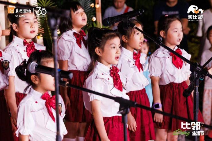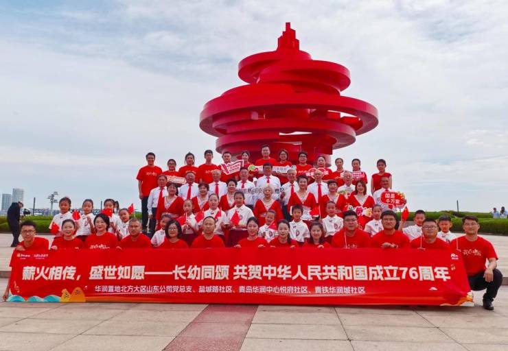 在祖国 76 年华诞来临之际,华润置地社群综合服务品牌「润比邻」携手华润置地北方大区山东公司党总支,联合湛山街道盐城路社区、青岛华润中心悦府·比邻时光合唱团、青岛华润城·万象少年合唱团以及万象生活,共同开展“薪火相传 盛世如愿”国庆主题活动。在政、企、民三方的紧密协同与全力支持下,近百名参与者满怀深情,宛如天籁般的歌声将社区的温情与浓浓的家国情怀完美融合,为祖国母亲献上最诚挚、最深情的祝福。