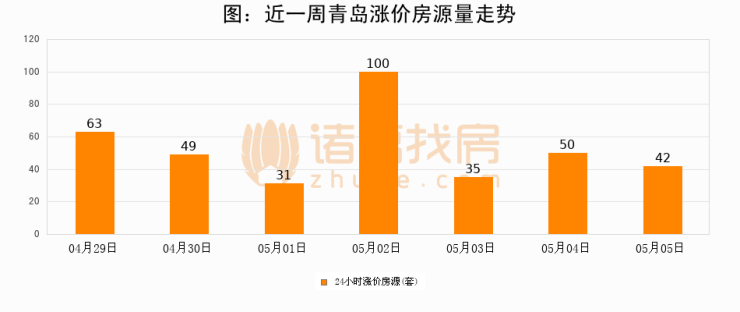 根据诸葛找房数据显示,青岛24小时涨价房源量为42套,较05月04日减少8套,环比下降16%。与此同时,涨价房源占比小幅回落,对于购房者来说是一个入市窗口期,购房者可抓住时机入市。