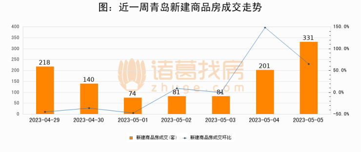 【青岛成交日报】05月05日新房成交331套、二手房282套;涨价房源42套