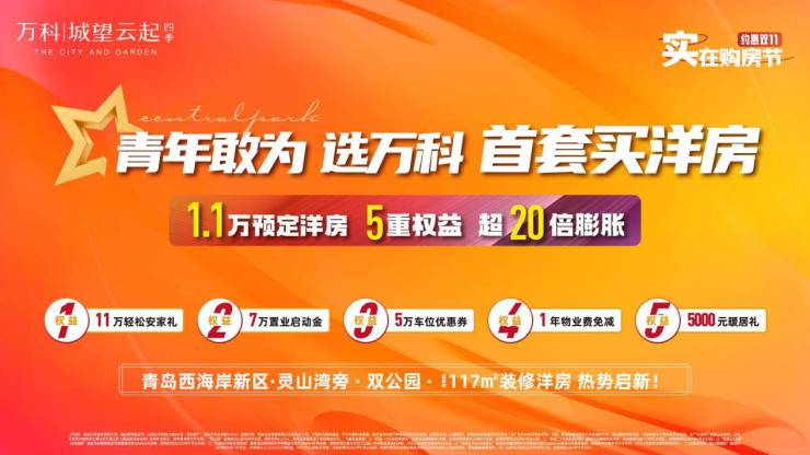 开发商:青岛万珠置业有限公司。商品房预售证号:青房注字青黄22第103号。整合推广:青岛万科企划能力中心;销售代理:唯家企业管理有限公司青岛分公司。本资料为要约邀请,不作为要约或承诺;相关宣传内容不排除因政府相关规划、规定及出卖人分期规划、未能控制等原因而发生变化;本广告中对项目周边环境、交通、教育配套及其他公共设施的介绍,旨在提供相关信息,不意味着本公司对此作出承诺。本广告适用于城望云起四季;活动买卖双方的权利义务以双方签订的《商品房买卖合同》及其补充协议、附件等书面文件为准;