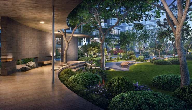 在越秀·青铁|和樾府,你可以驻足欣赏绿意盎然的景色