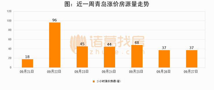 根据诸葛找房数据显示,青岛24小时涨价房源量为37套,较09月26日持平。