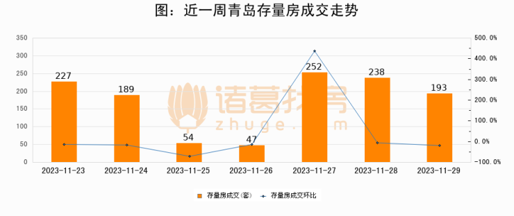 【青岛成交日报】11月29日新房成交444套、二手房193套;涨价房源57套